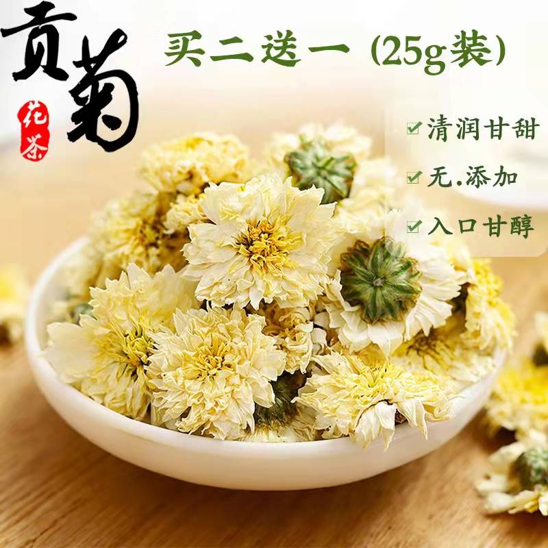贡菊性甘苦,微寒。内含菊甘、腺嘌呤、胆碱及维生素A1、B1、氨基酸钾、钠盐等成分, 临床应用证明:能镇静中枢神经,增强毛细血管…